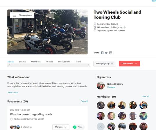 To visit the site click go to: https://www.meetup.com/Auckland-Sport-Bikes-Meetup/ Club members are encouraged to join.